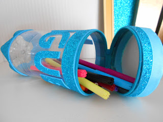 Ora então como reciclar é um vicio, aqui estão uns estojos feitos a partir de garrafas de água.