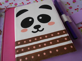 Visão geral do organizador com o caderno também decorado com um panda que dá para por e tirar.